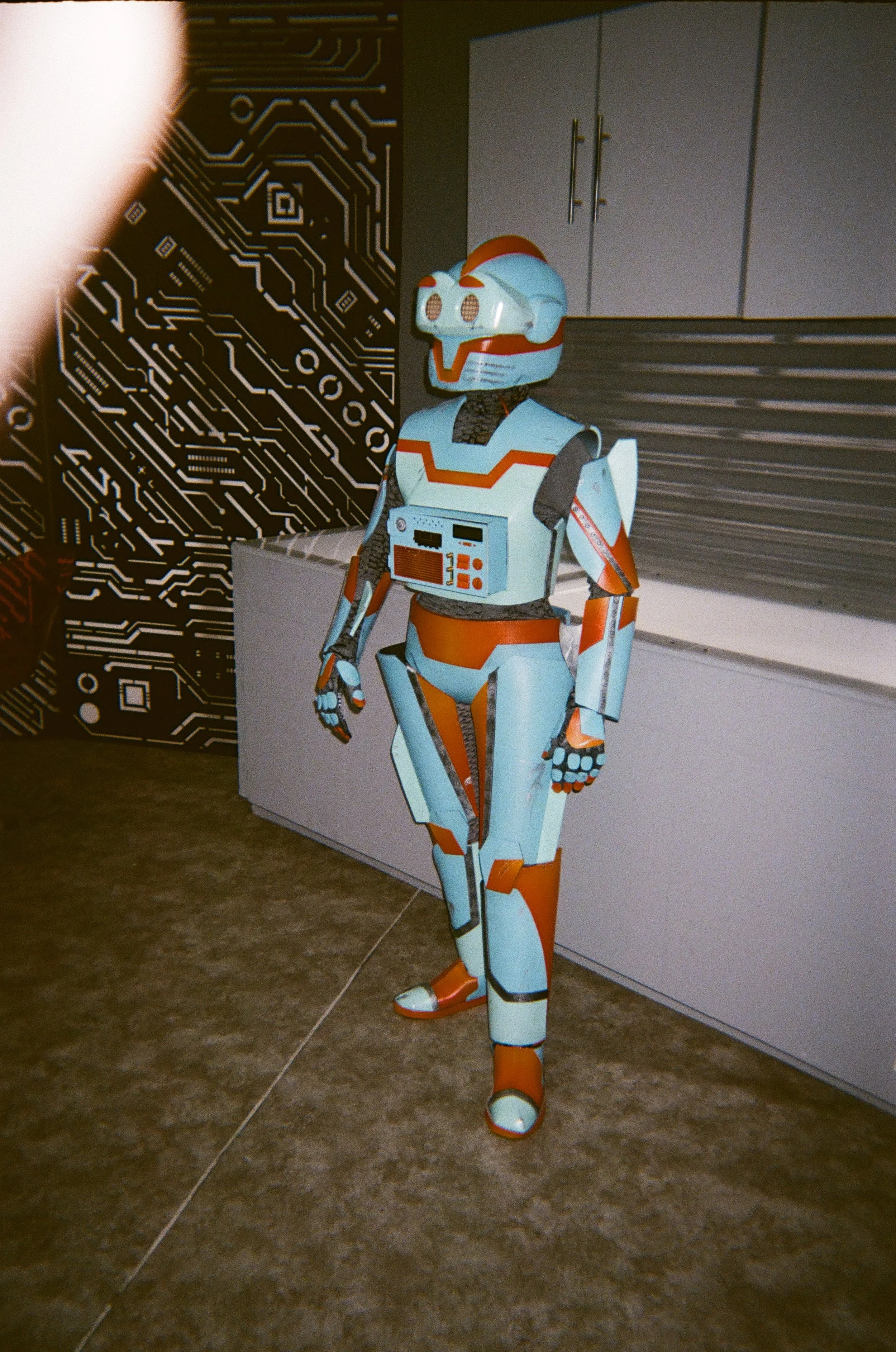 They hired me to design and create the robot suit. I was asked to make it a wearable costume for an actor to wear and to give it the ability to show emotions that can be controlled off-screen.